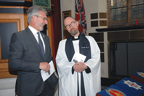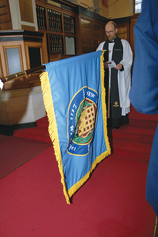 The Chaplain then addressed the congregation: "Brothers and sisters, we meet together in the presence of God to take part in this service of the blessing and dedication of the New Ypres League Standard dedication of the New Ypres League Standard and dedication of the Memorial Plaque to the New Ypres League.