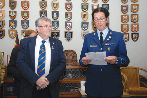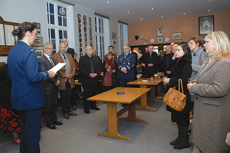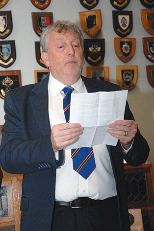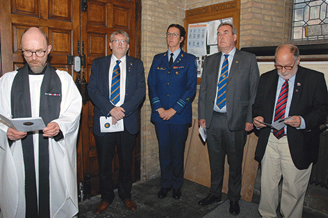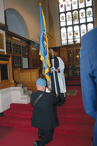 Following a reading by Rosie Barron, the Membership Secretary the Standard Bearer marched the Standard to the Chaplain who then said: "In the name of the Father, and of the Son, and of the Holy Spirit, we do dedicate and set apart this Standard, that it may be a sign of our duty towards our kings and Countries and a symbol of the service that the New Ypres League is called upon to render. May Almighty God bless this Standard, that it would inspire and encourage those who serve in the New Ypres League in the years to come. Amen."