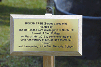 Following the excellent service we were led to the garden behind the Church and next to the Eton Memorial School. A rowan tree was planted by Dr Andrew Gailey, who was representing The Right Honourable Lord Waldegrave of North Hill, Provost of Eton College, who was unable to attend due to ill health.