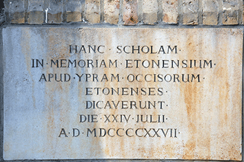 At 11am on the 11th of November last year, the boys at Eton gathered in School Yard. Such gatherings of the whole school are rare, for we are a large school and do not have a building that can hold all the boys under one roof. Of course, this particular meeting held a greater significance. We were there in an act of remembrance of all those who died fighting in the First World War. Amid the traditional ceremonial – the prayers, the sounding of the Last Post, the Two Minute Silence scrupulously observed, and the laying of wreaths – there hung in the air something truly awful before our eyes. As I looked over the ranks of boys, all 1320 of them – distinctive in their black tailcoats, just as their ancestors had worn 100 years before – I suddenly realised that they were only a little more than the 1157 Old Etonians who had died in the war. It was as if the dead had returned to show us just what these numbers meant in human terms. Here was the mass of their sacrifice. And they would have looked no different from their successors in the yard last November: young, hopeful faces, eager to embrace the lifetime that was their due. The service over, the boys drifted out to the future that lay ahead and, as they did, the memory of those that died silently retreated back to the memorial tablets that line the whole length of the Colonnade.